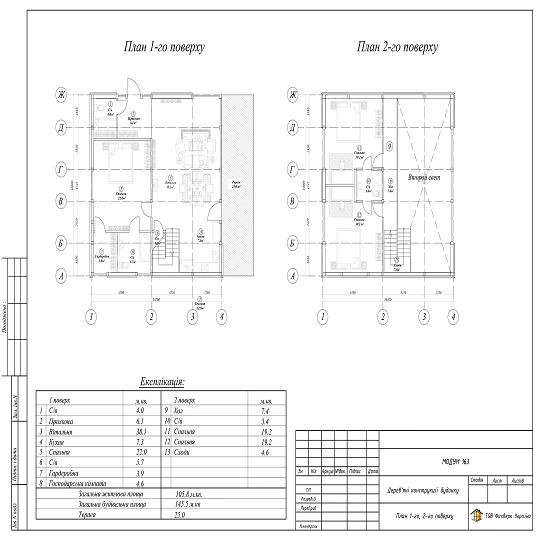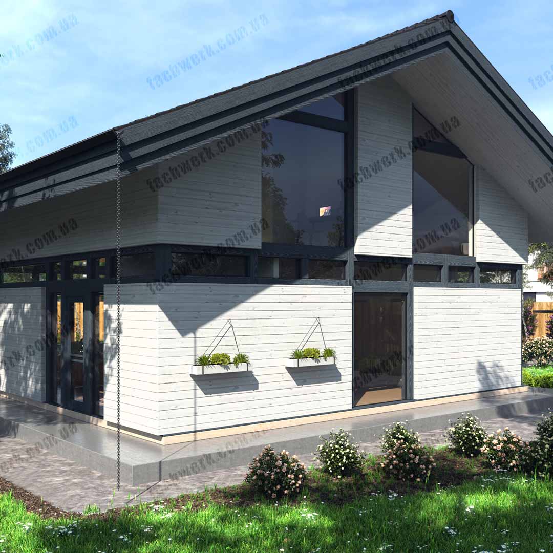- Компактний двоповерховий будинок у класичному стилі з просторими кімнатами, "подвійним світлом" та високими стелями у вітальні, з ергономічним другим поверхом у 2х варіантах планування.