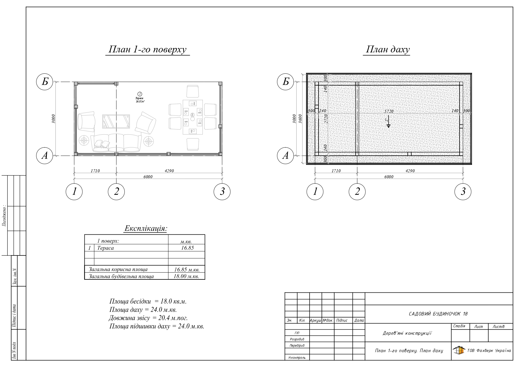 - Конструкція каркасу, стін, підлоги - оброблена та пофарбована деревина.